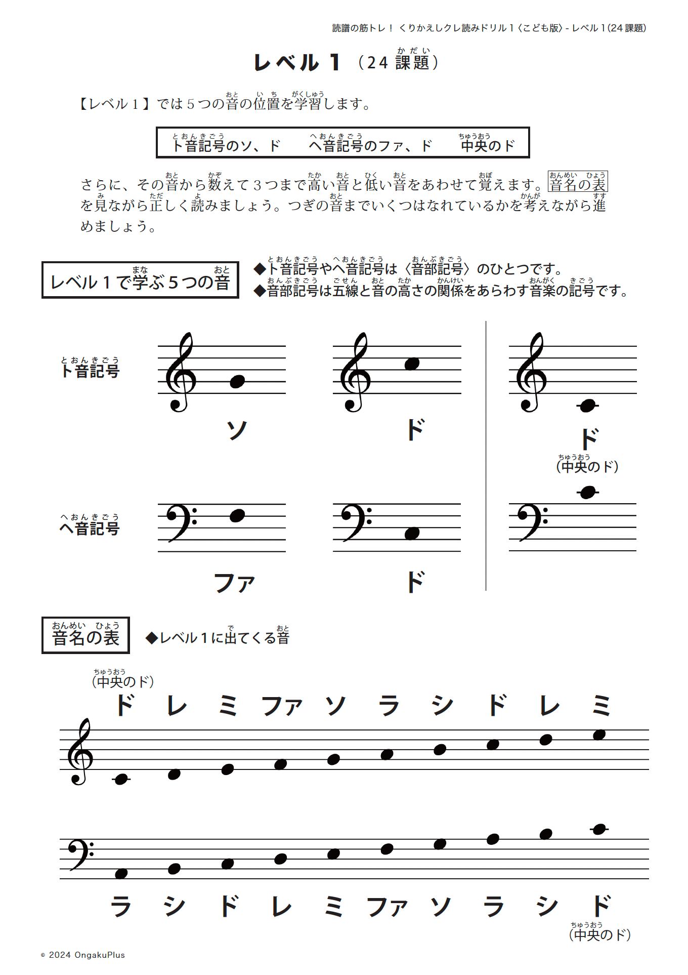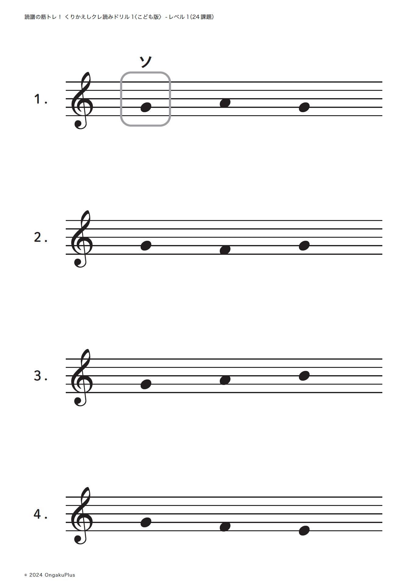 〈こども版〉読譜の筋トレ!くりかえしクレ読みドリル1- レベル1(24課題)