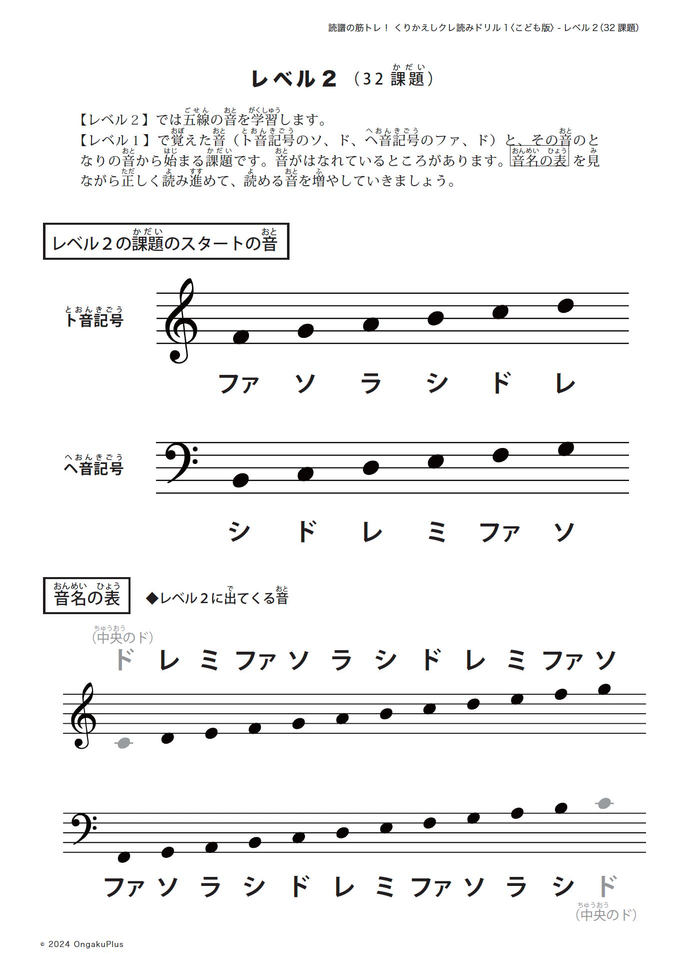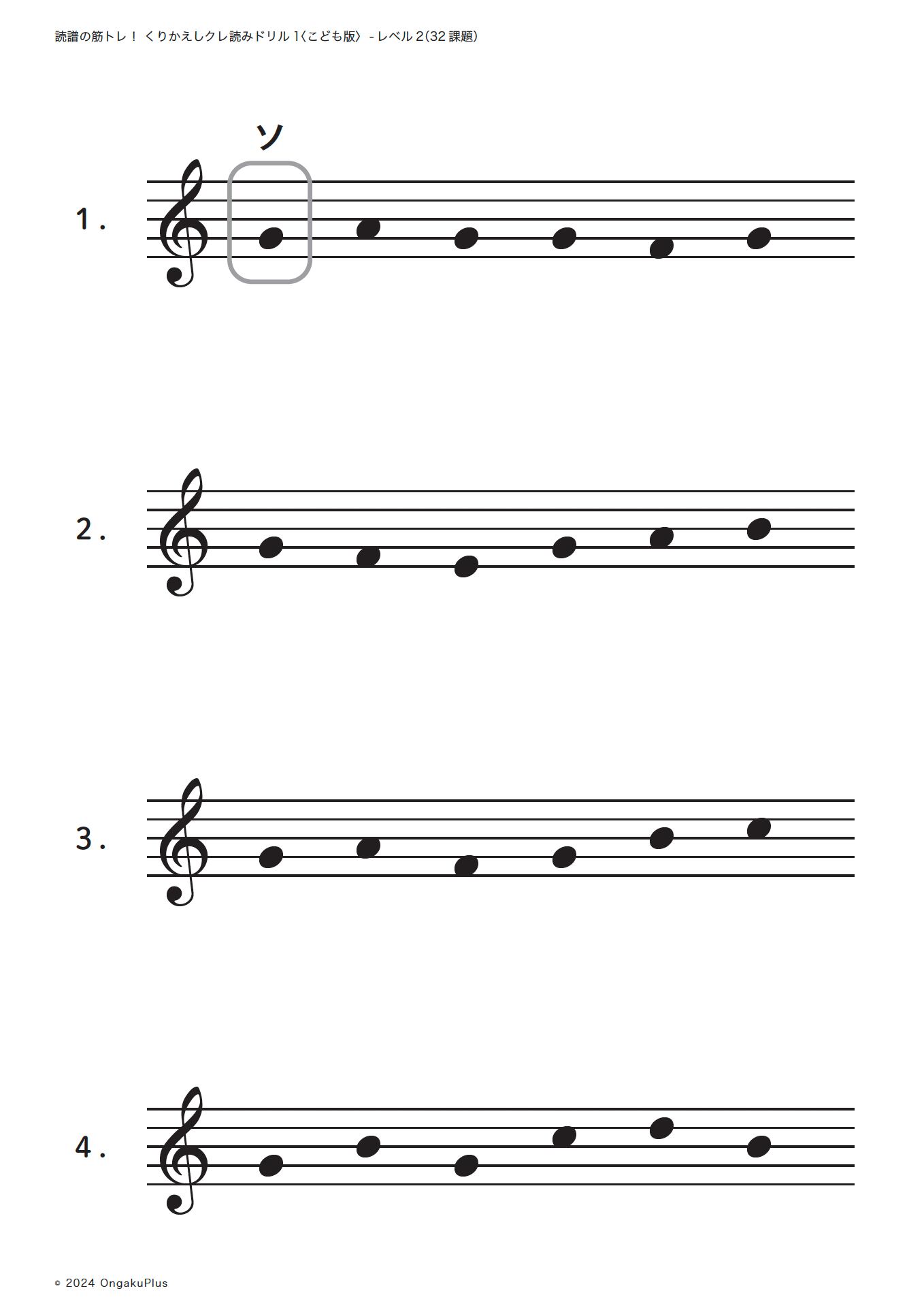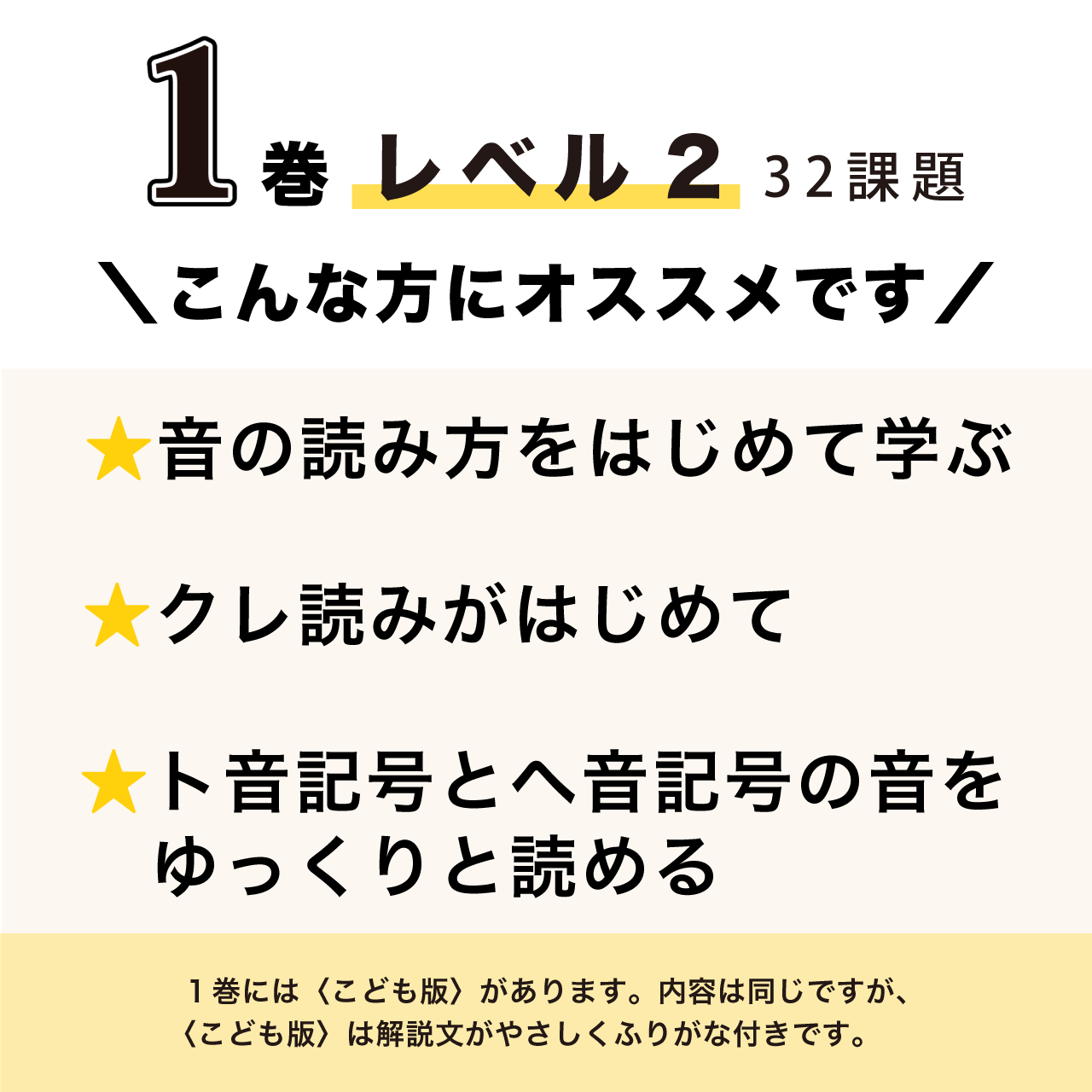 〈こども版〉読譜の筋トレ!くりかえしクレ読みドリル1- レベル2(32課題)