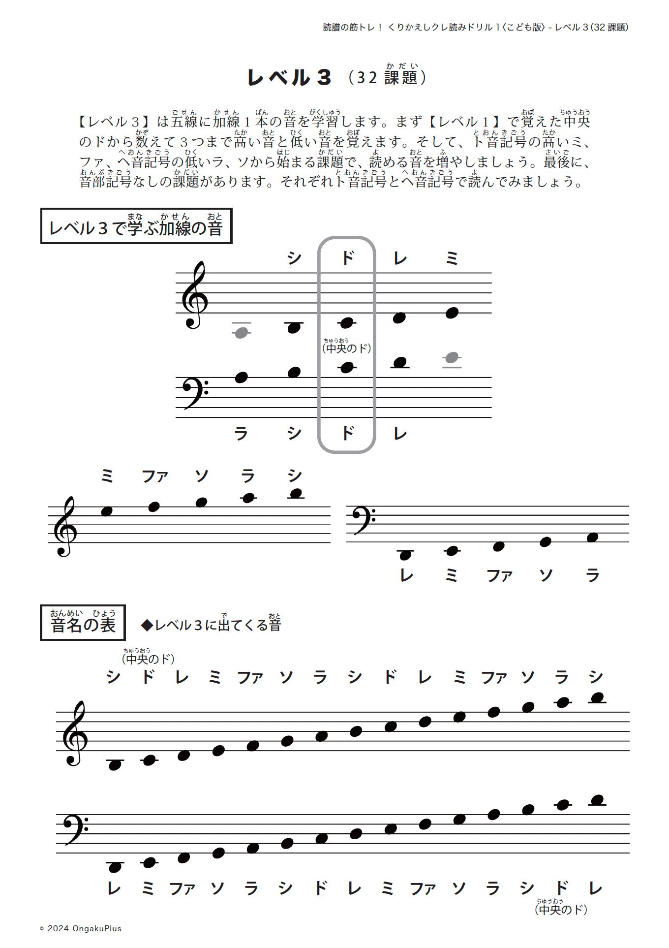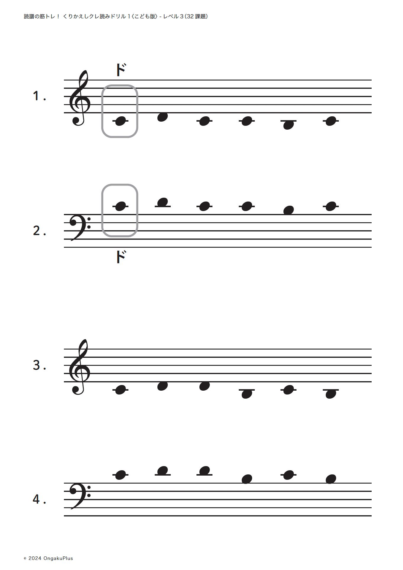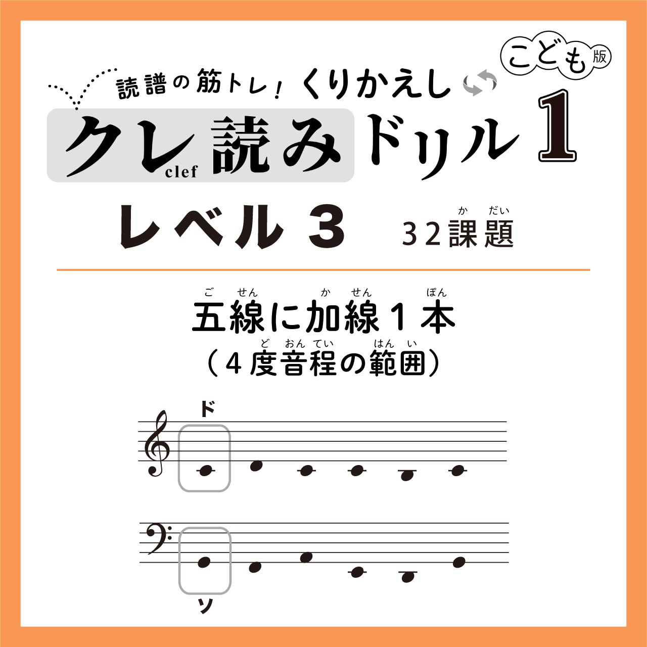 〈こども版〉読譜の筋トレ!くりかえしクレ読みドリル1- レベル3(32課題)