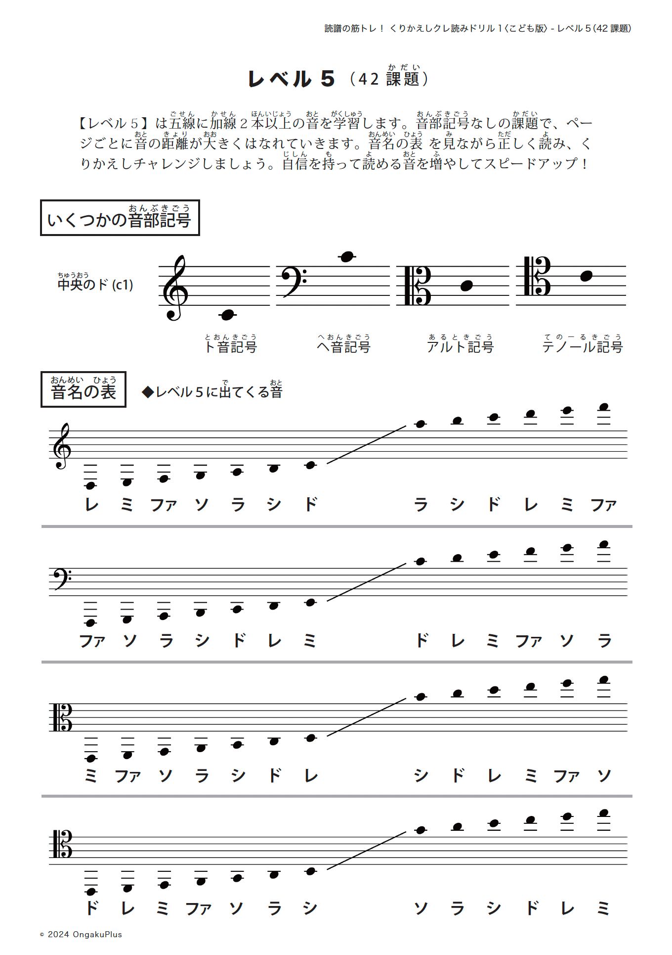 〈こども版〉読譜の筋トレ!くりかえしクレ読みドリル1- レベル5(42課題)