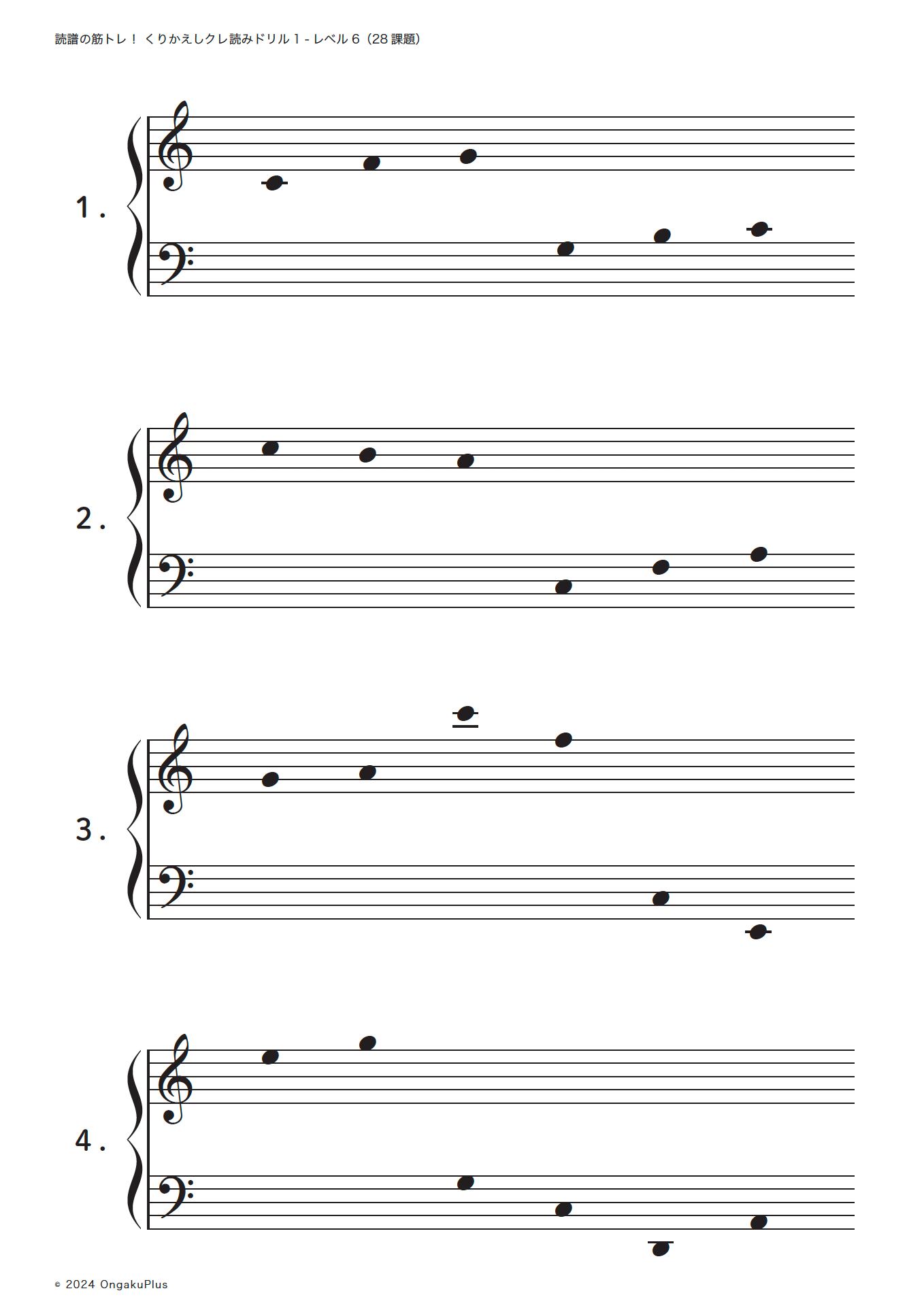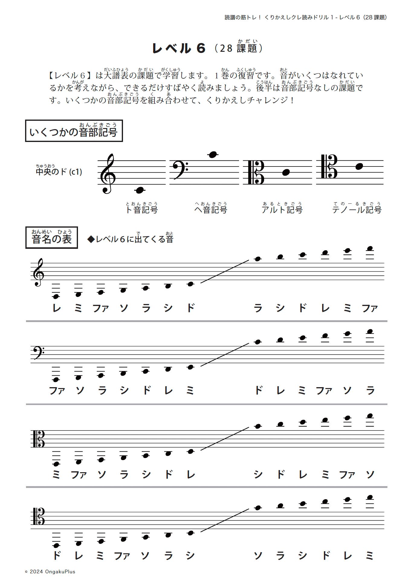 〈こども版〉読譜の筋トレ!くりかえしクレ読みドリル1- レベル6(28課題)