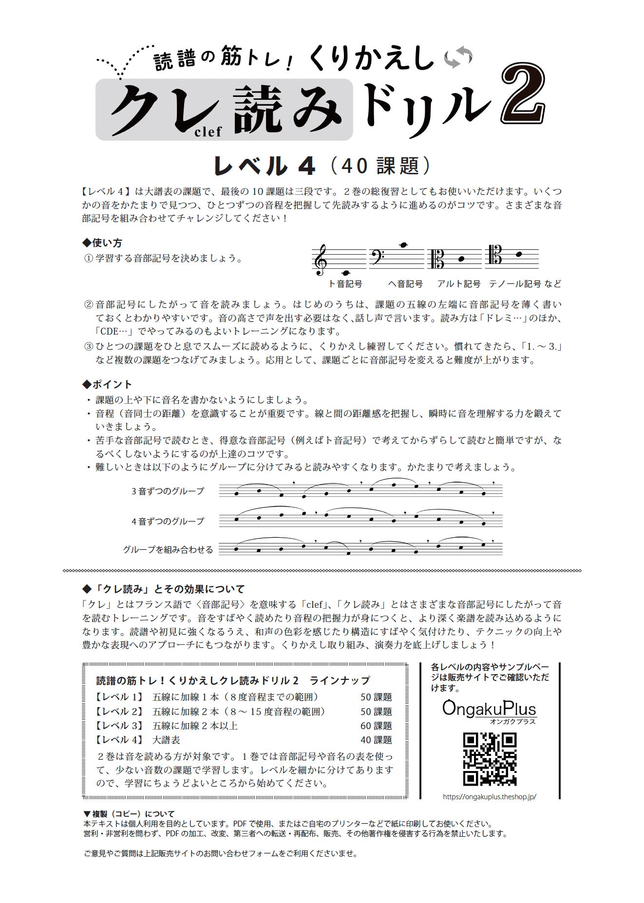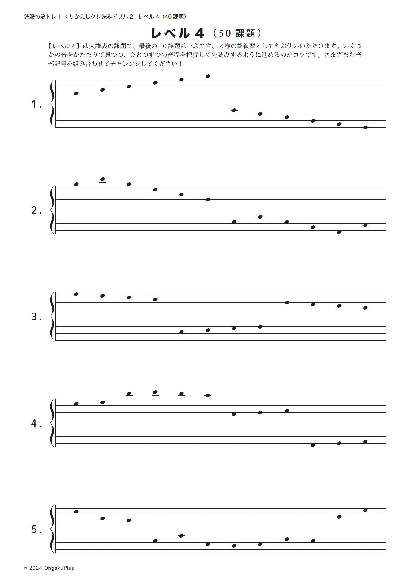 読譜の筋トレ!くりかえしクレ読みドリル2- レベル4(40課題)