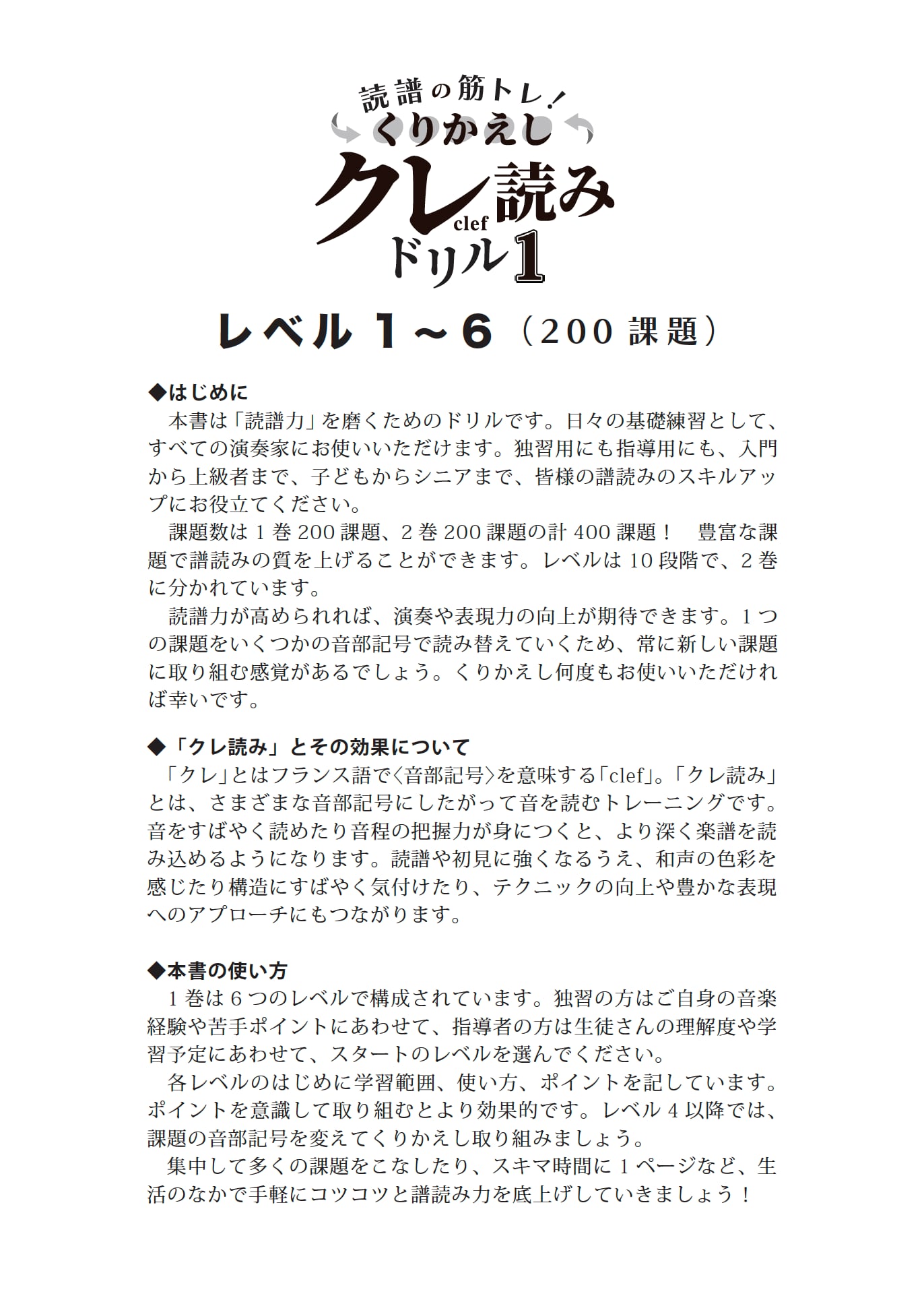 ★★『読譜の筋トレ! くりかえしクレ読みドリル1』の【レベル1〜6】が1冊に!★★