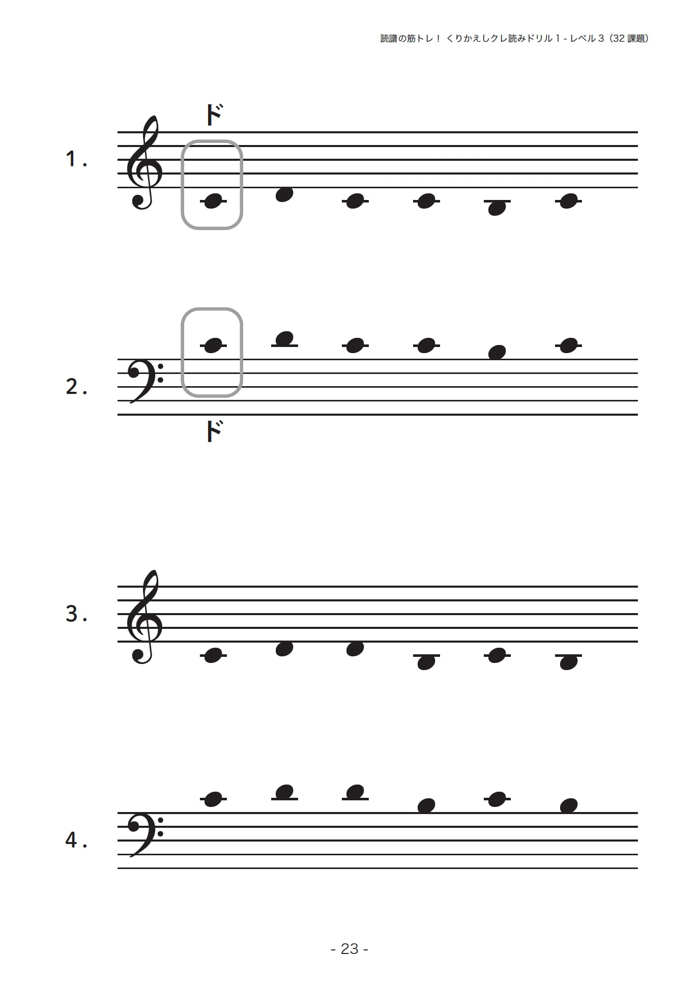 読譜の筋トレ!くりかえしクレ読みドリル1 ◆200課題 (PDFダウンロード販売)