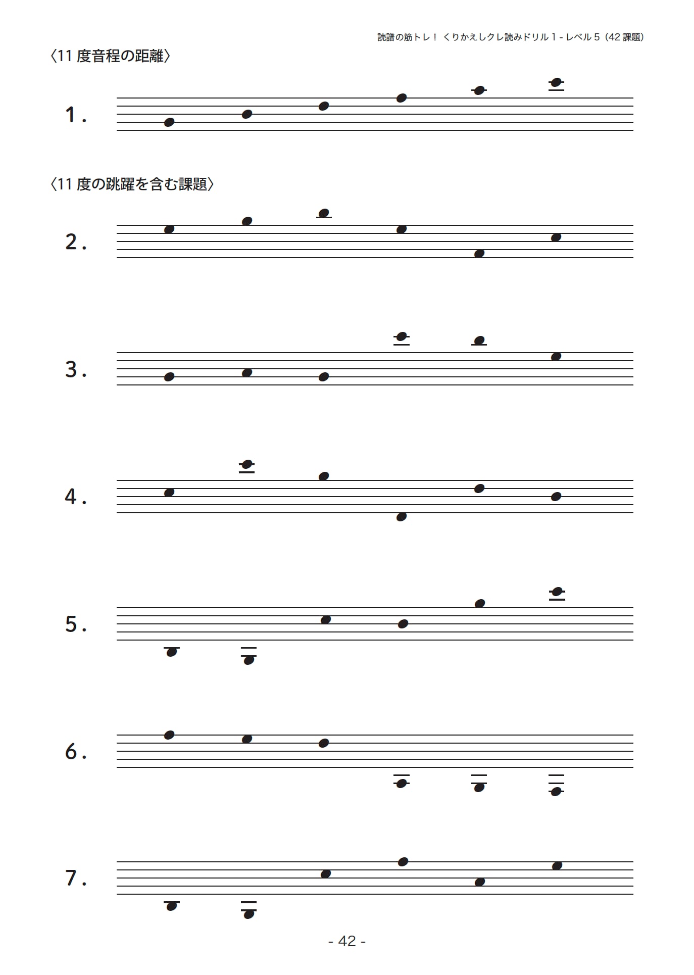 学習する音の範囲: 五線に加線1本(5〜11度音程の範囲)